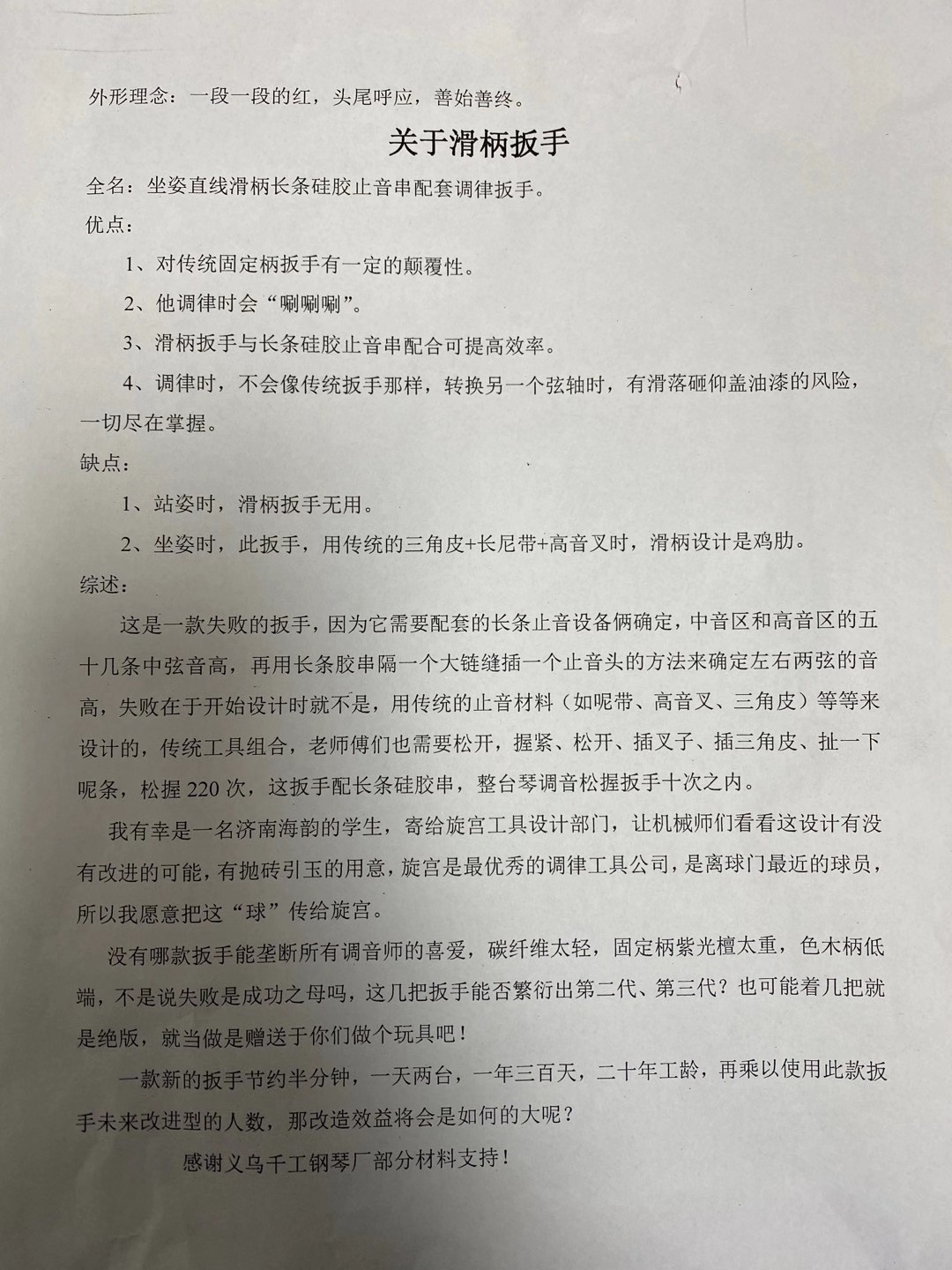 很感谢郭勋礼同学送给每位老师自己发明的调律扳手,这些扳手都是他自己设计、打磨一个个做出来的,真的非常用心。他总说是学校改变了他的人生轨迹,很感谢学校付出,更愿意分享你的成果给我们,在这里真的很感谢你,你的用心温暖了我们每一位老师,也希望你的工作和生活会越来越好。